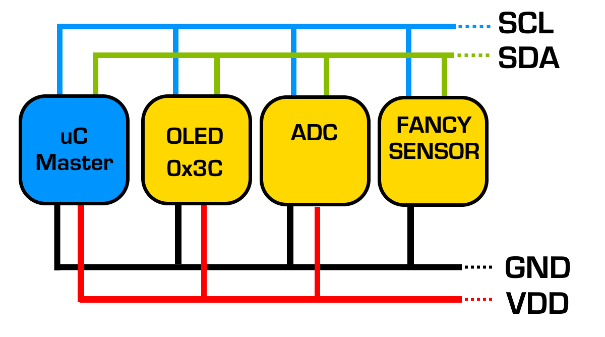 i2c is a protocol used for certain OLED displays, LCDs, many new and cheap sensors, and even if you want one microcontroller to talk with another. This guide shows how you can connect the i2c device to an Arduino-type microcontroller, and poll its address. These sensors and displays can be used on Raspberry Pi also (as long as they are good for running at for 3.3V).