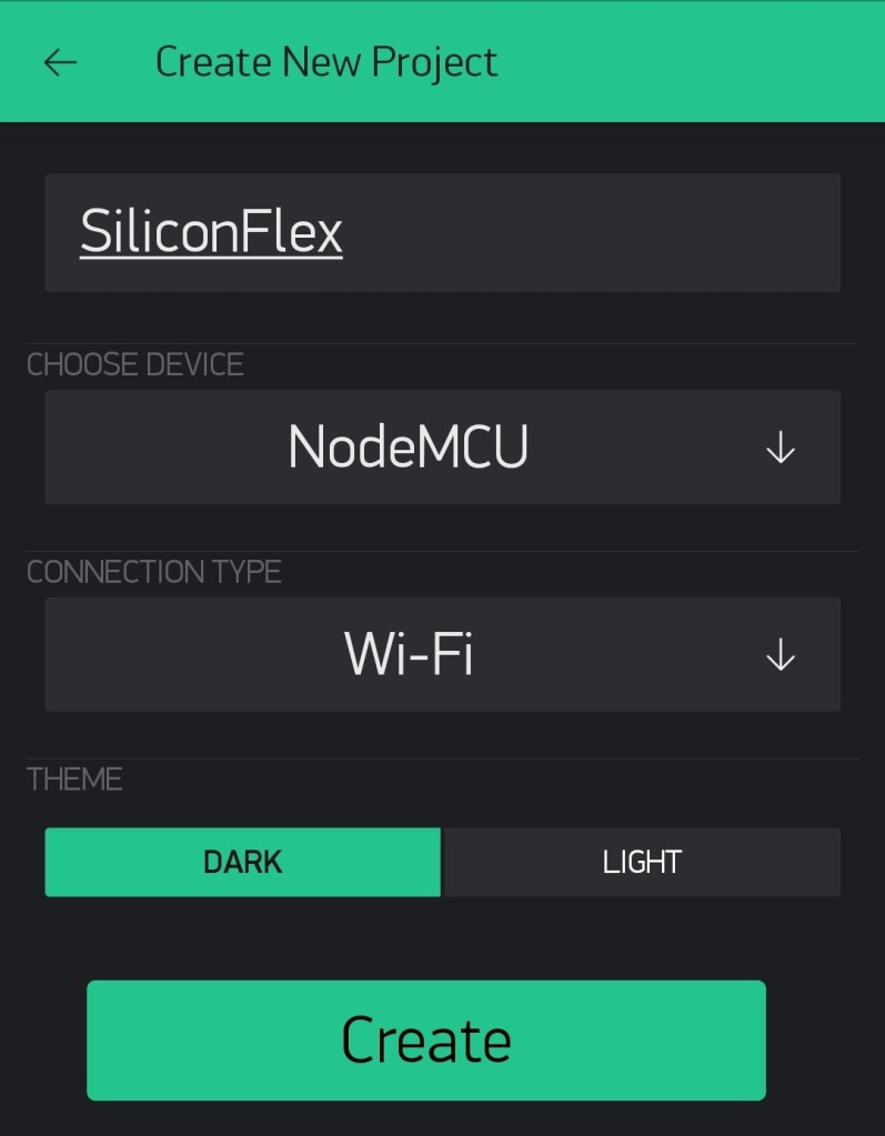 Next up, add a new project, choose the right ESP8266 device (in our case “NodeMCU“), choose Dark as the theme, because only the cool programmers use dark themes. And add a choose a project name that makes you look clever and sophisticated.