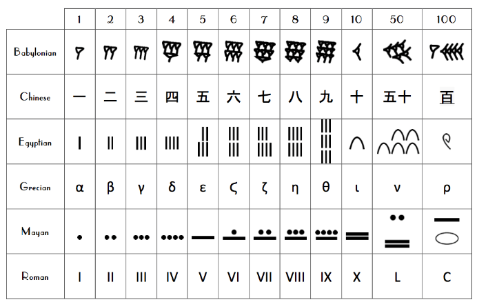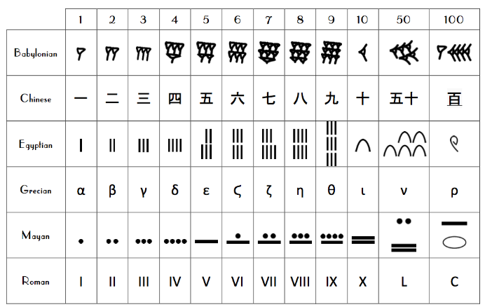 1] Imagine grocery counters but only sticks, no numbers. How would you keep track of 7 apples?