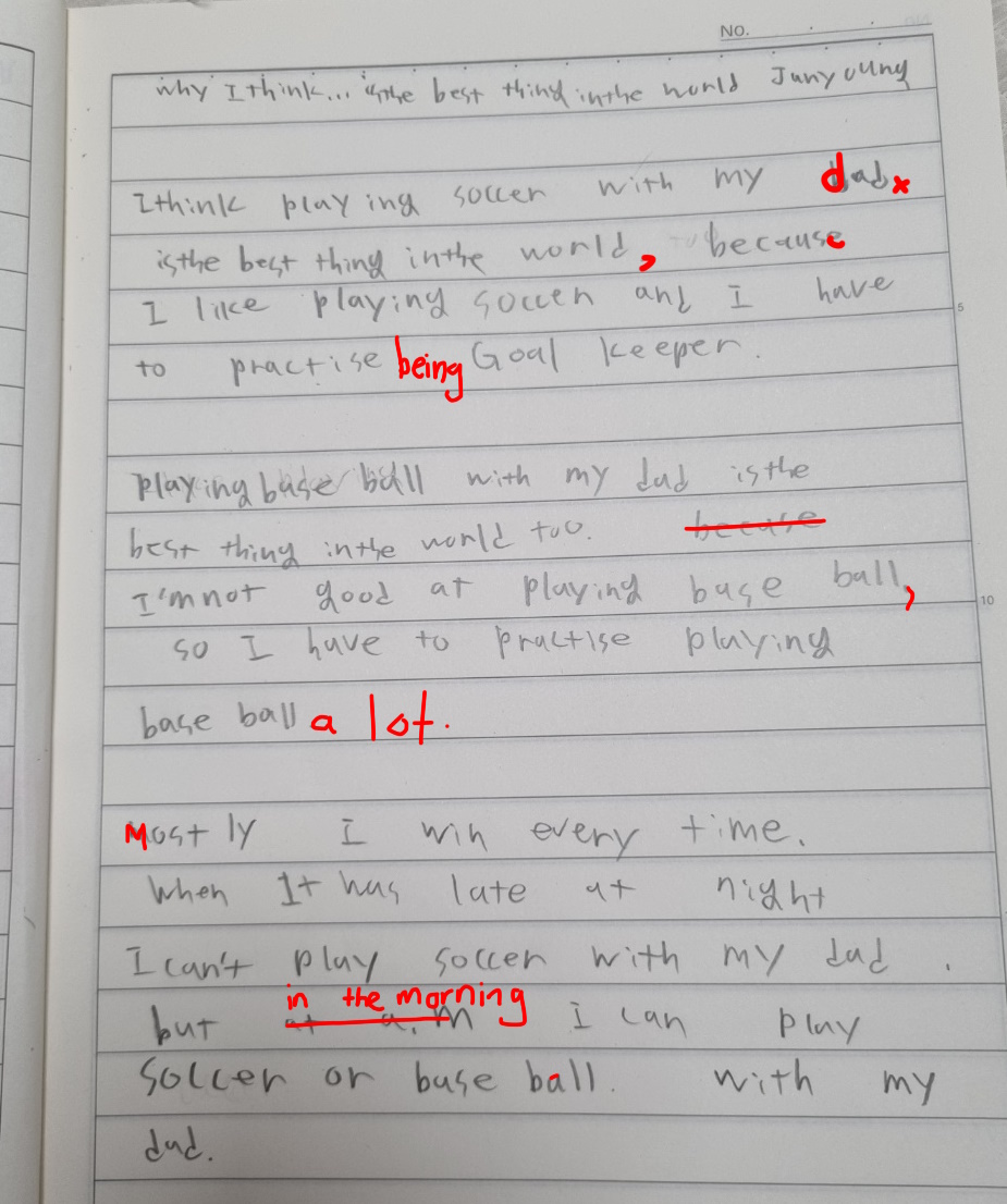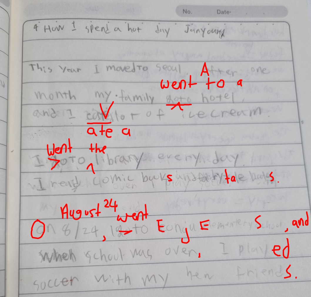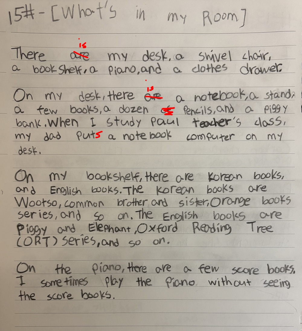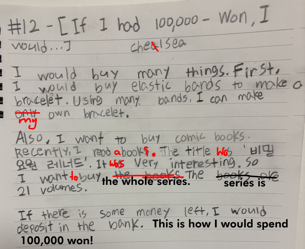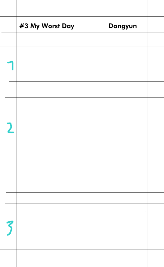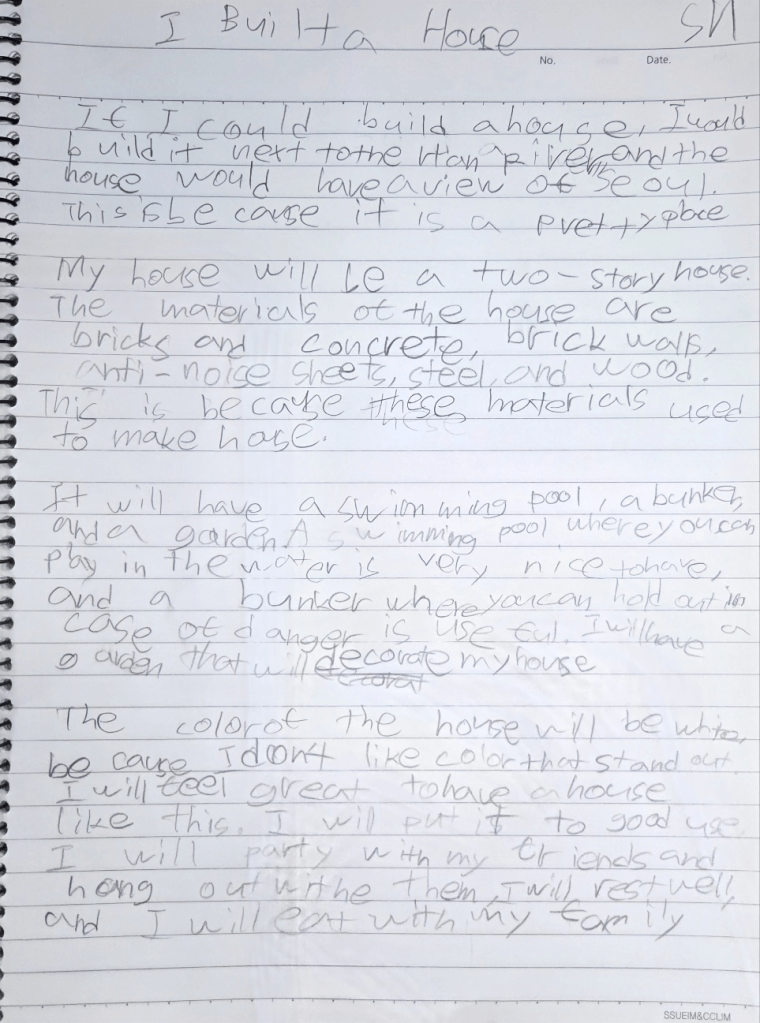 [Write this on normal lined paper, not Korean three-line paper]