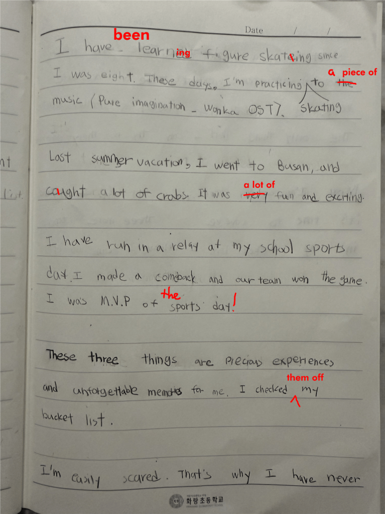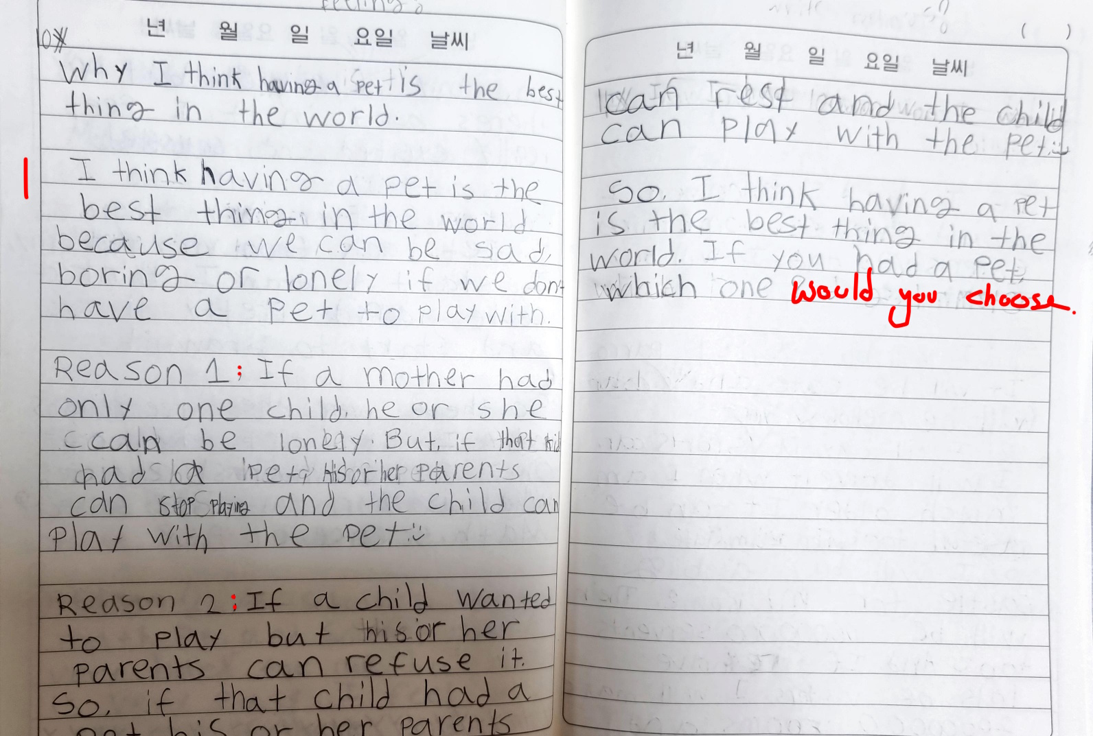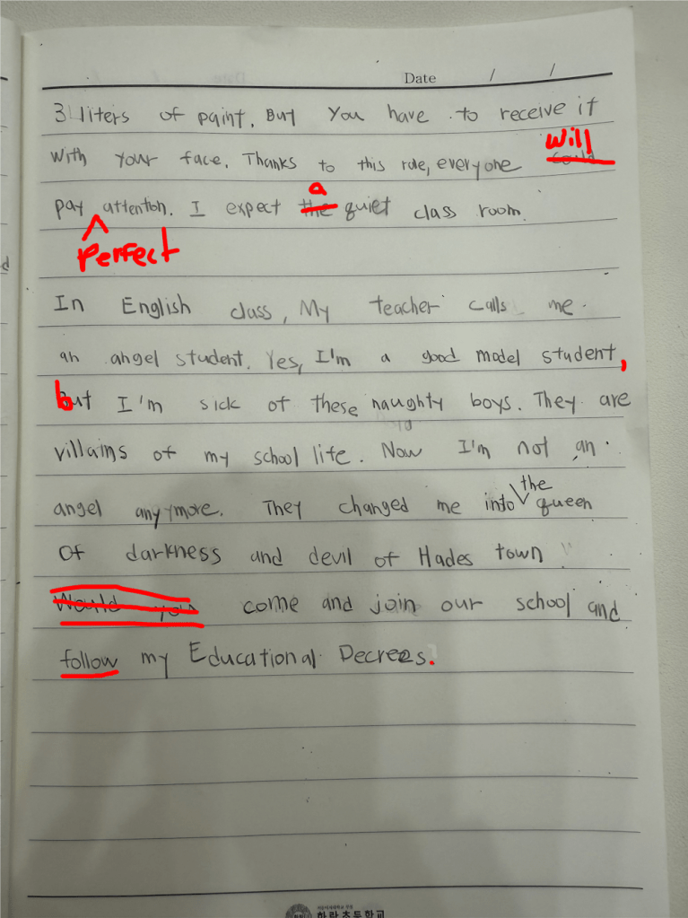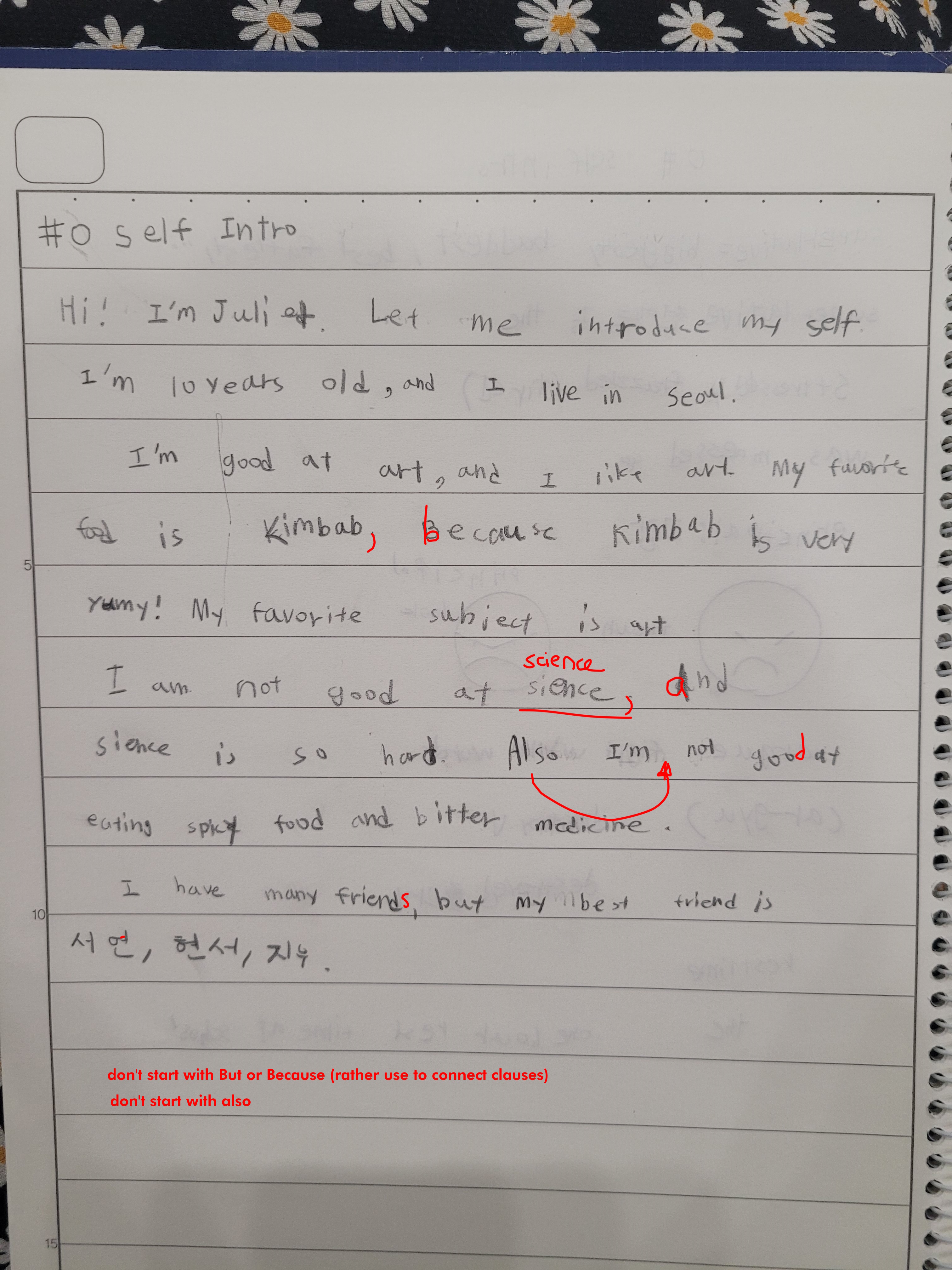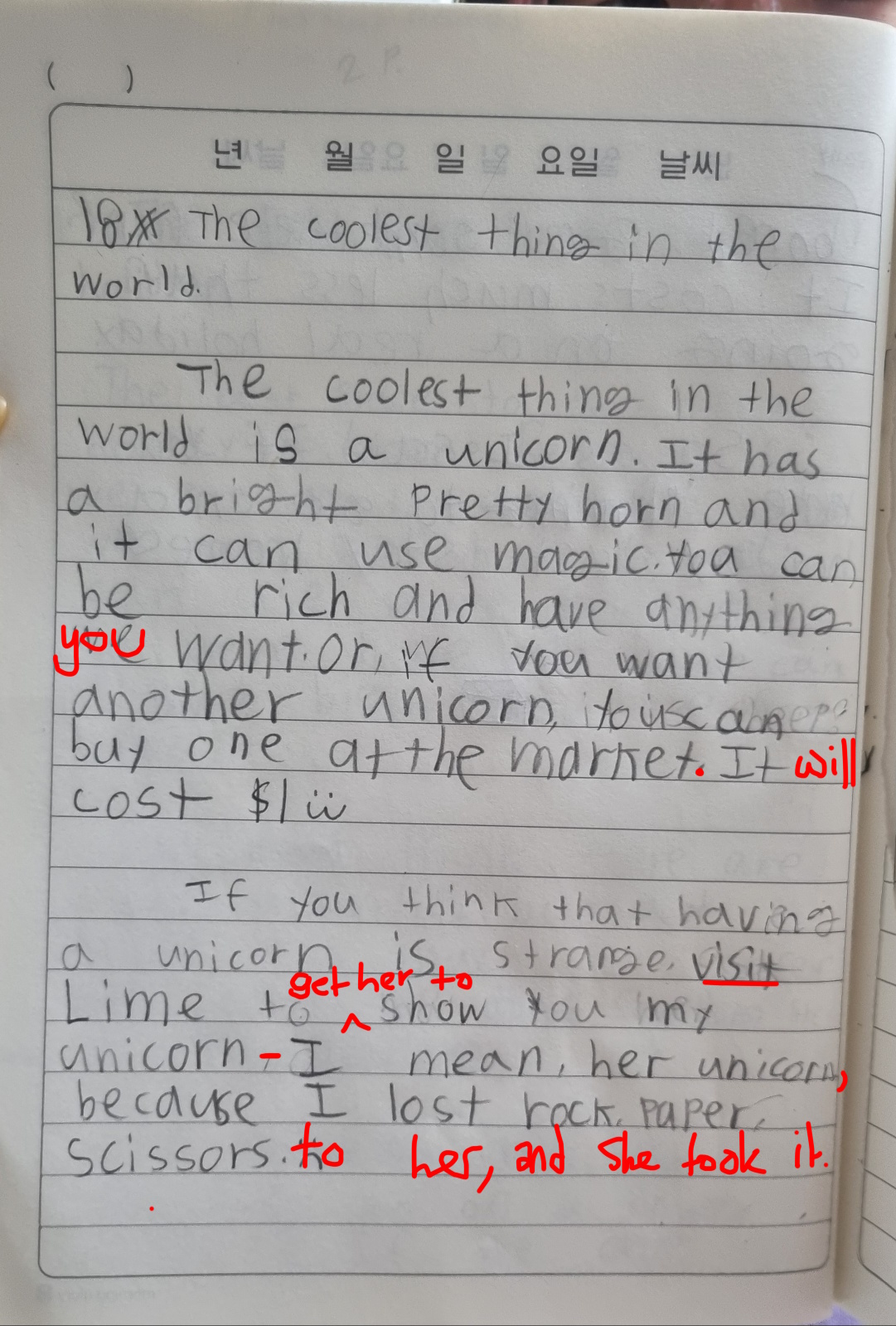 [Write this on normal lined paper, not Korean three-line paper]