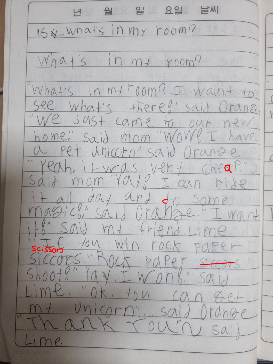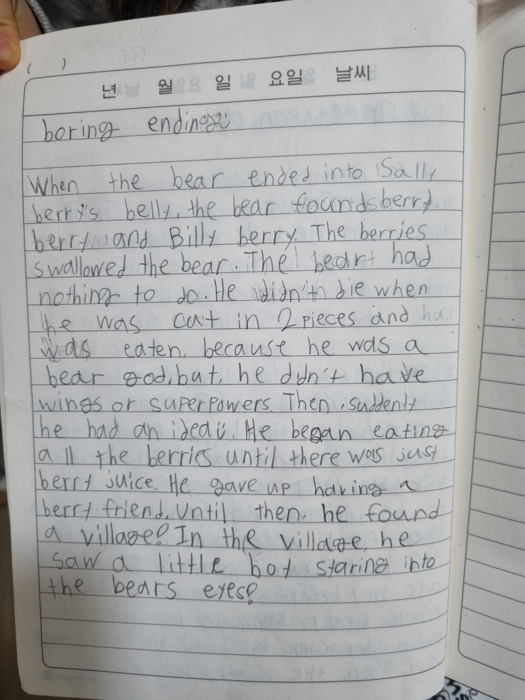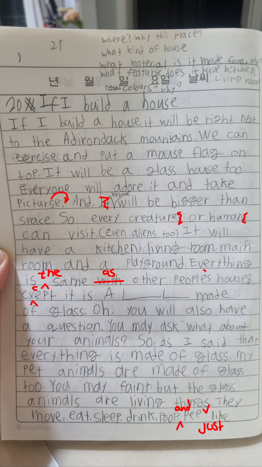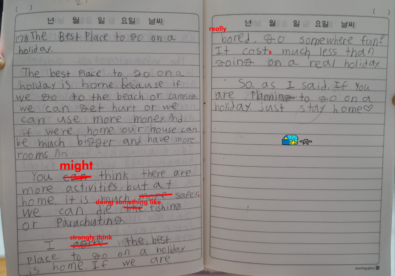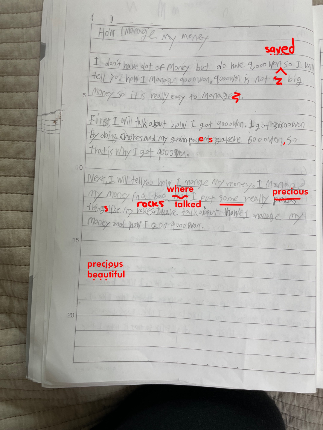 [Write this on normal lined paper, not Korean three-line paper]