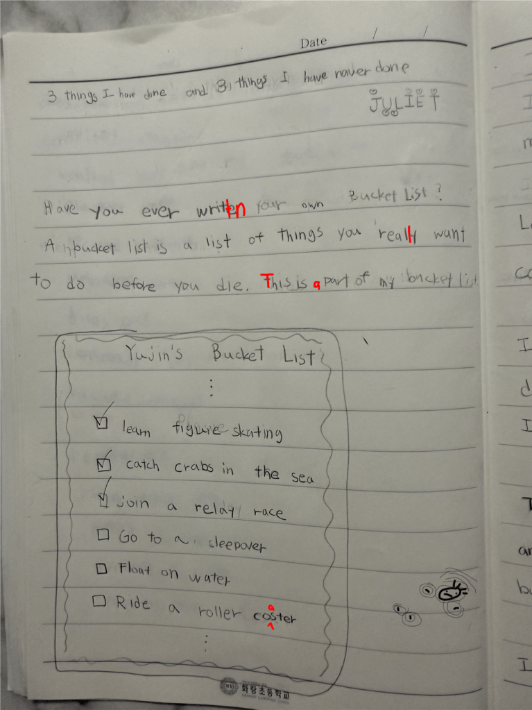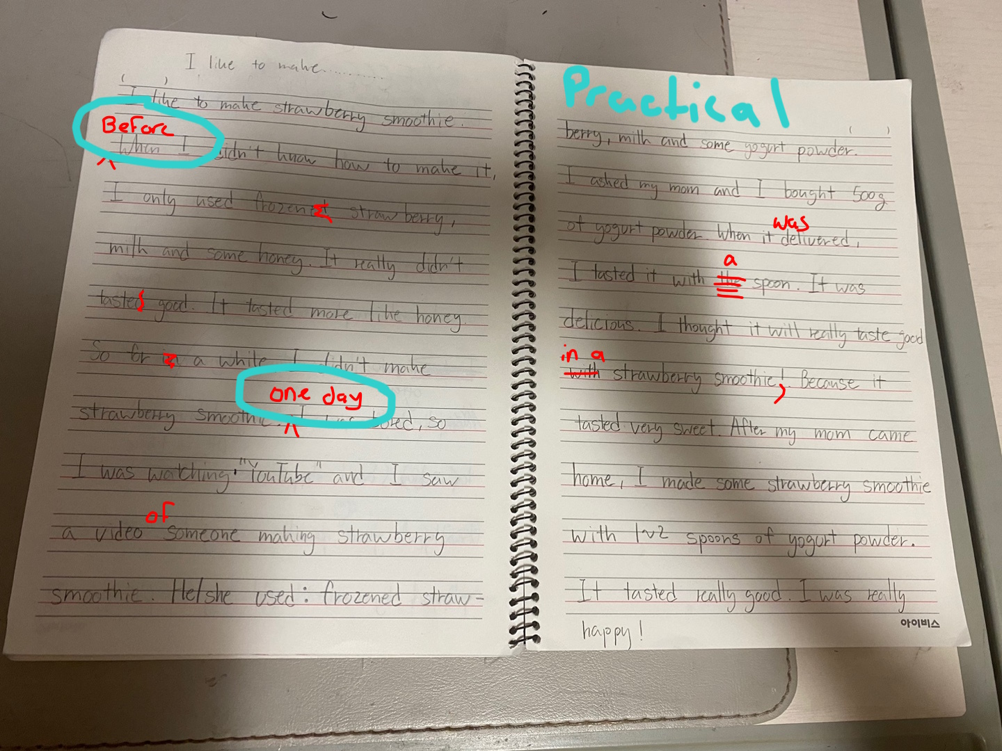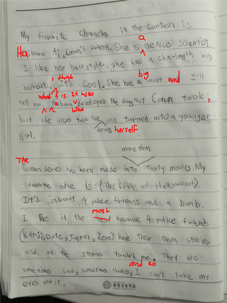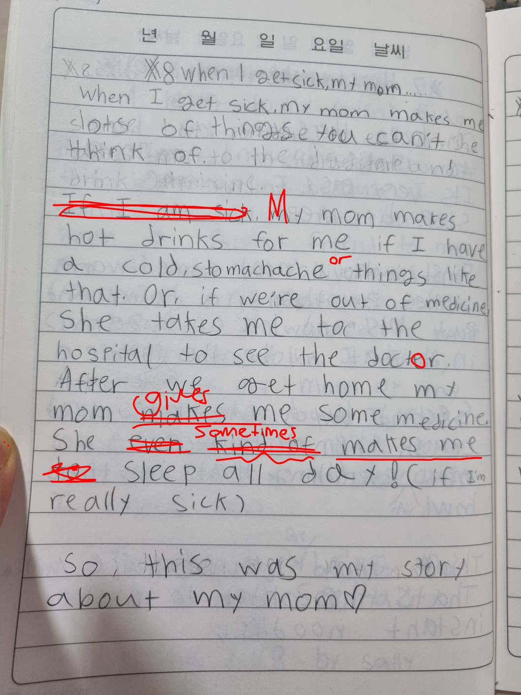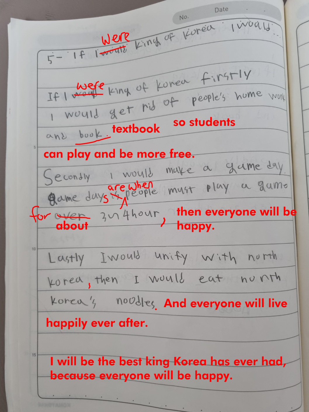 [Write this on normal lined paper, not Korean three-line paper]