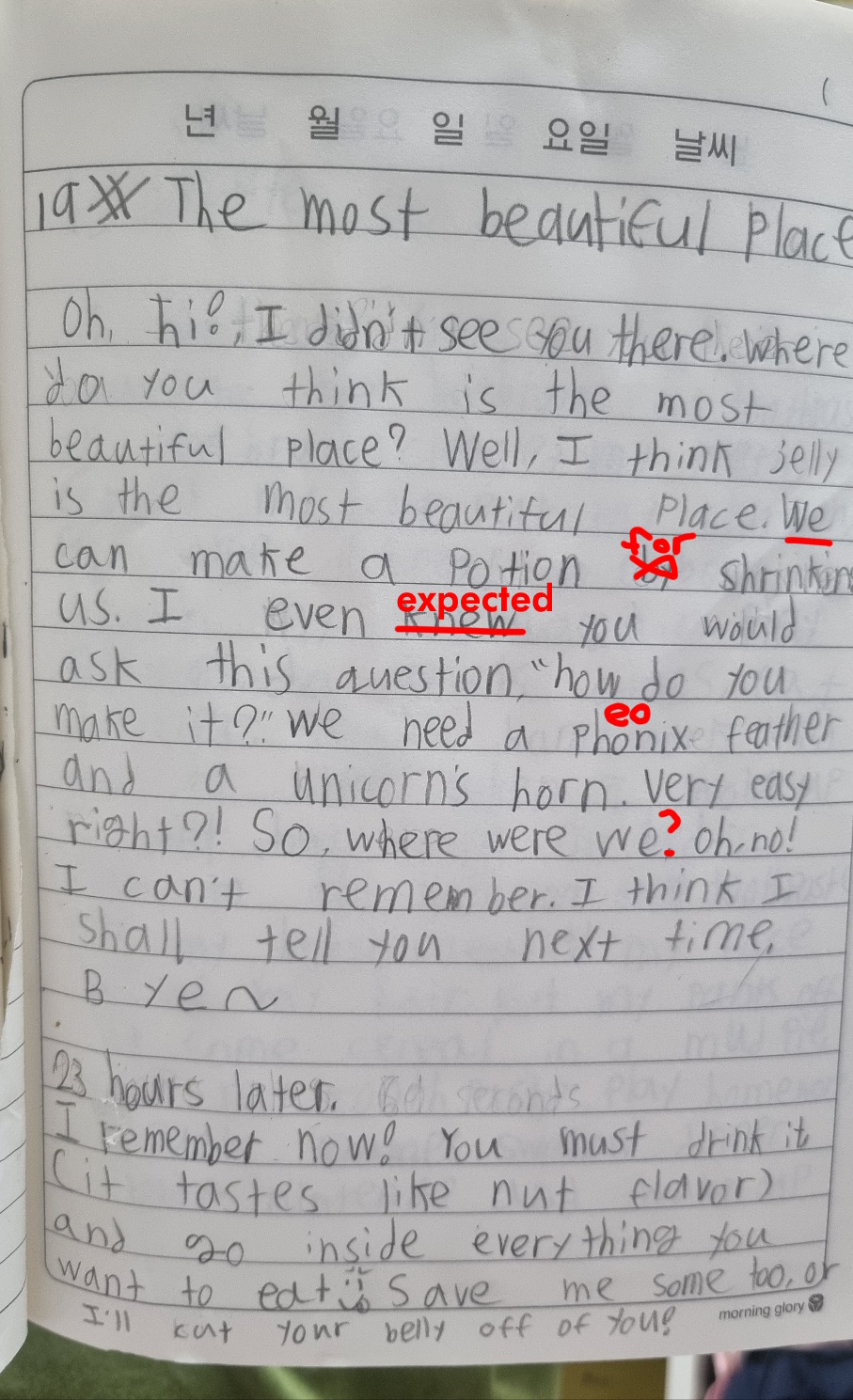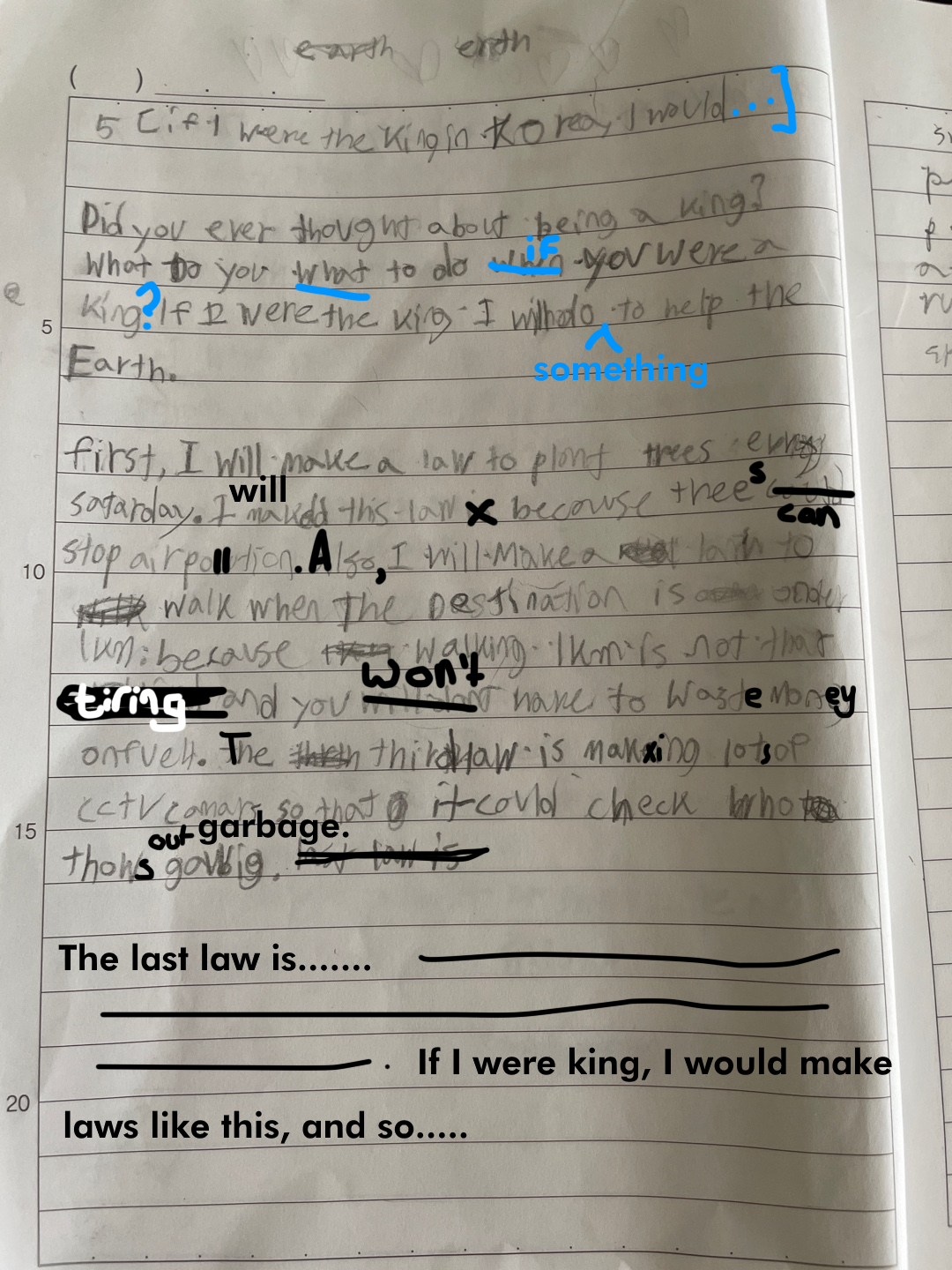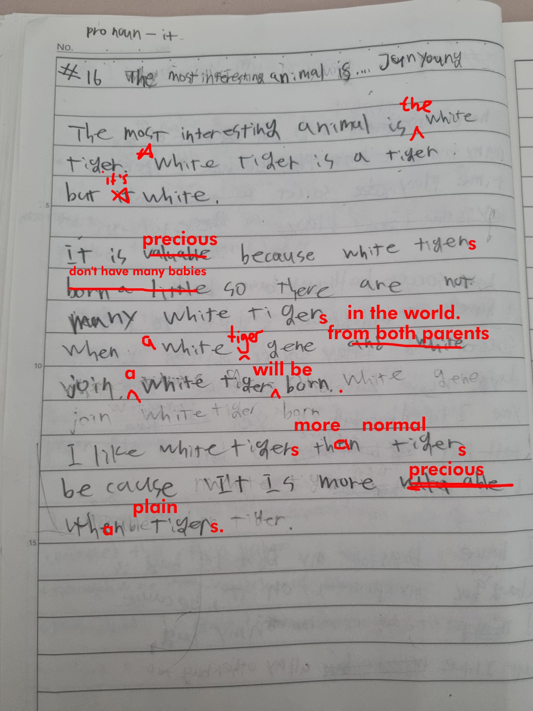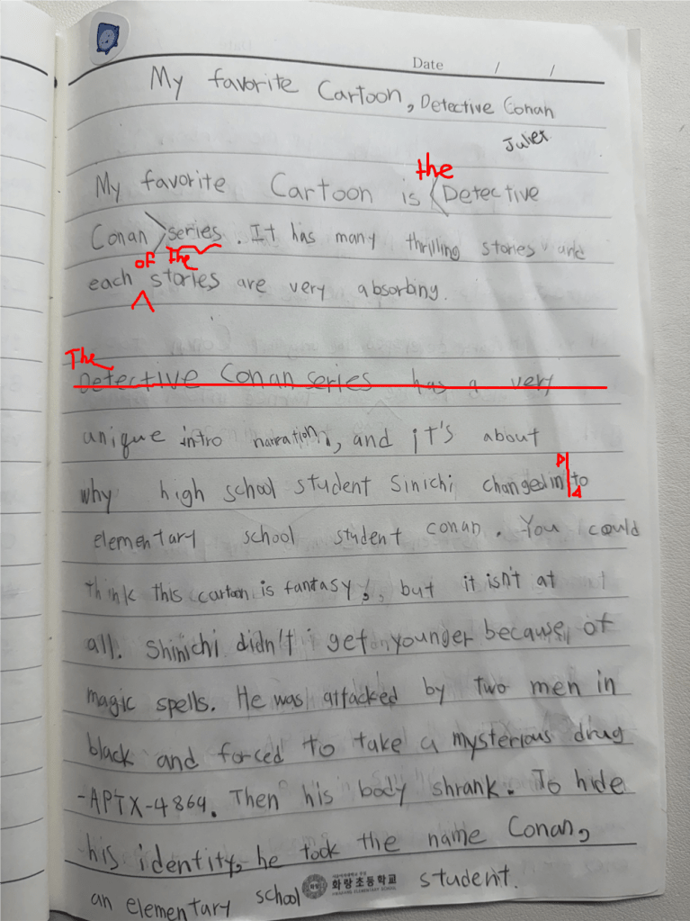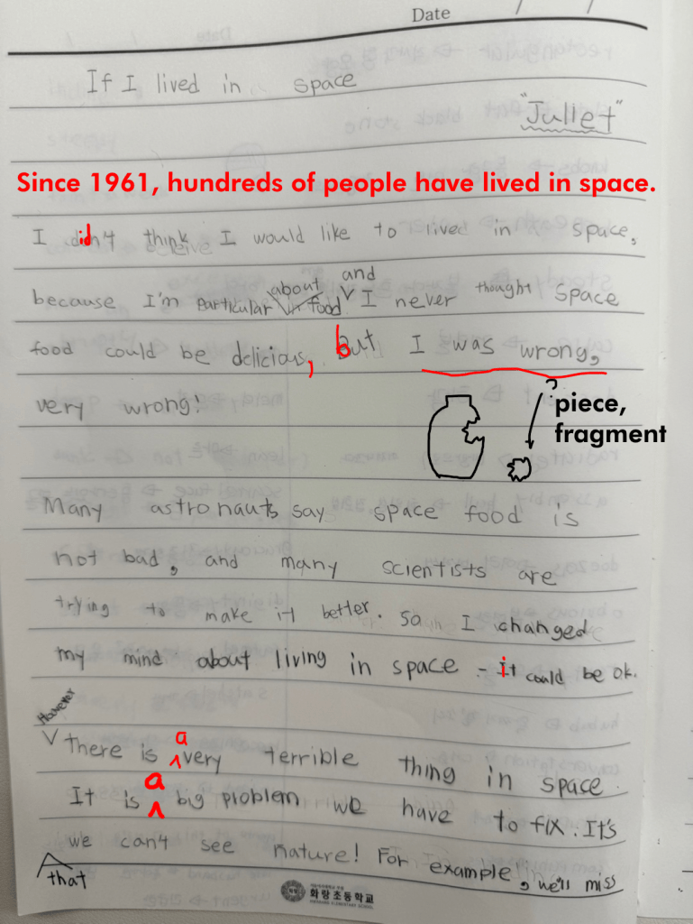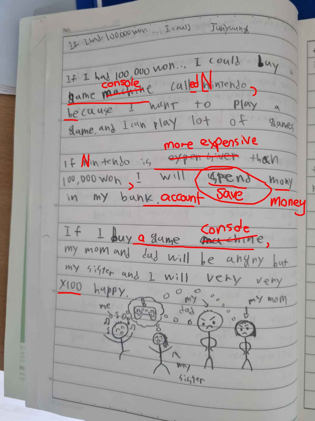 [Write this on normal lined paper, not Korean three-line paper]