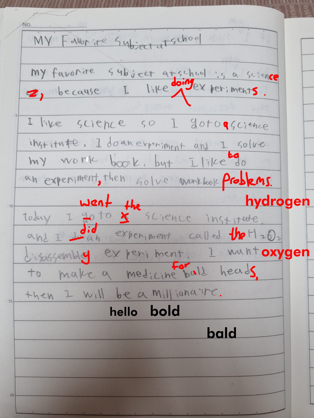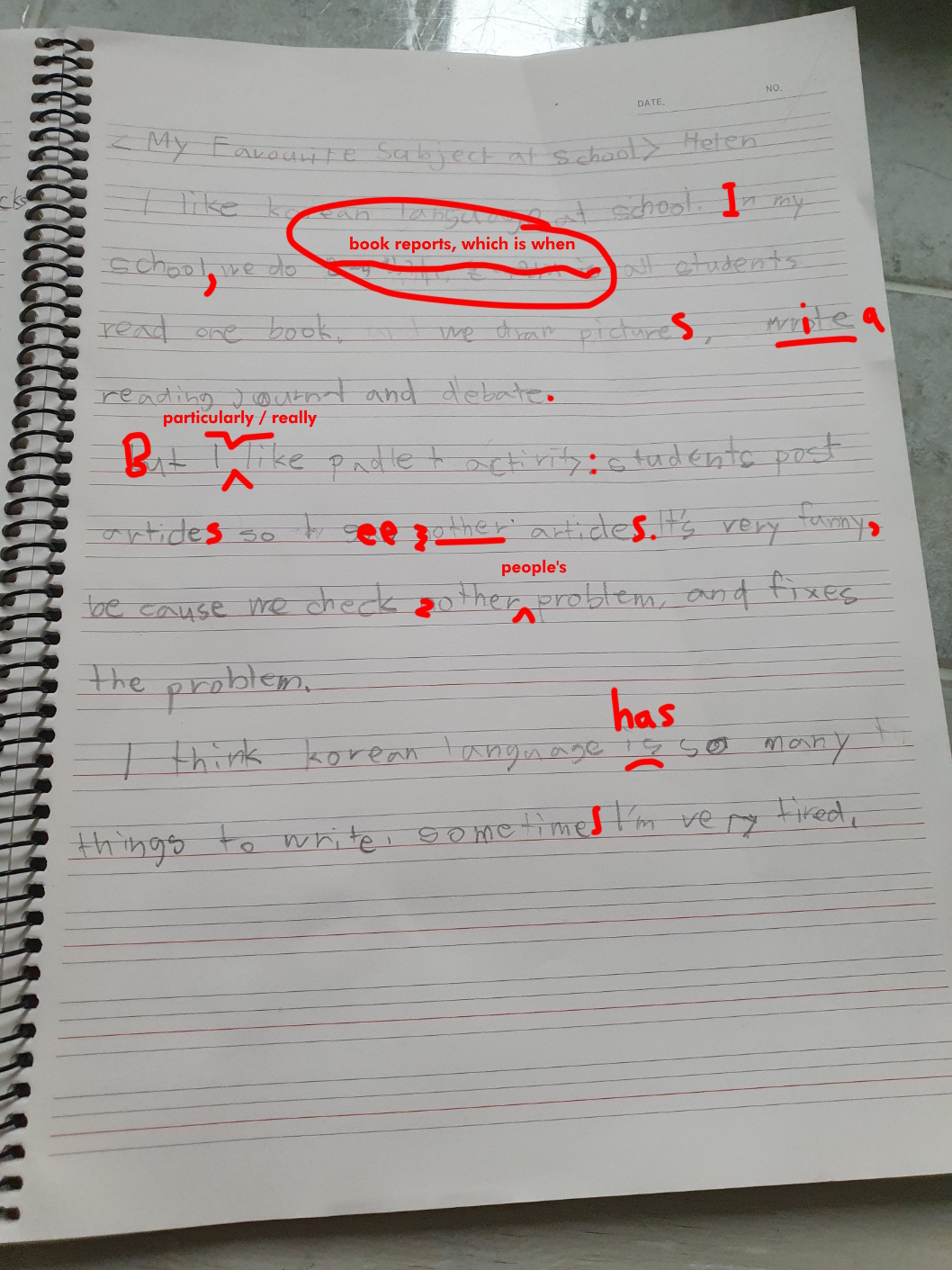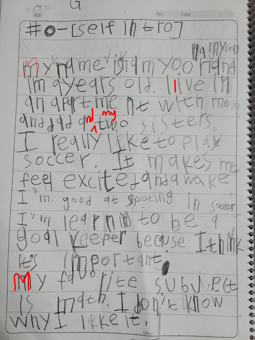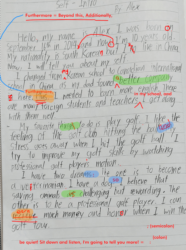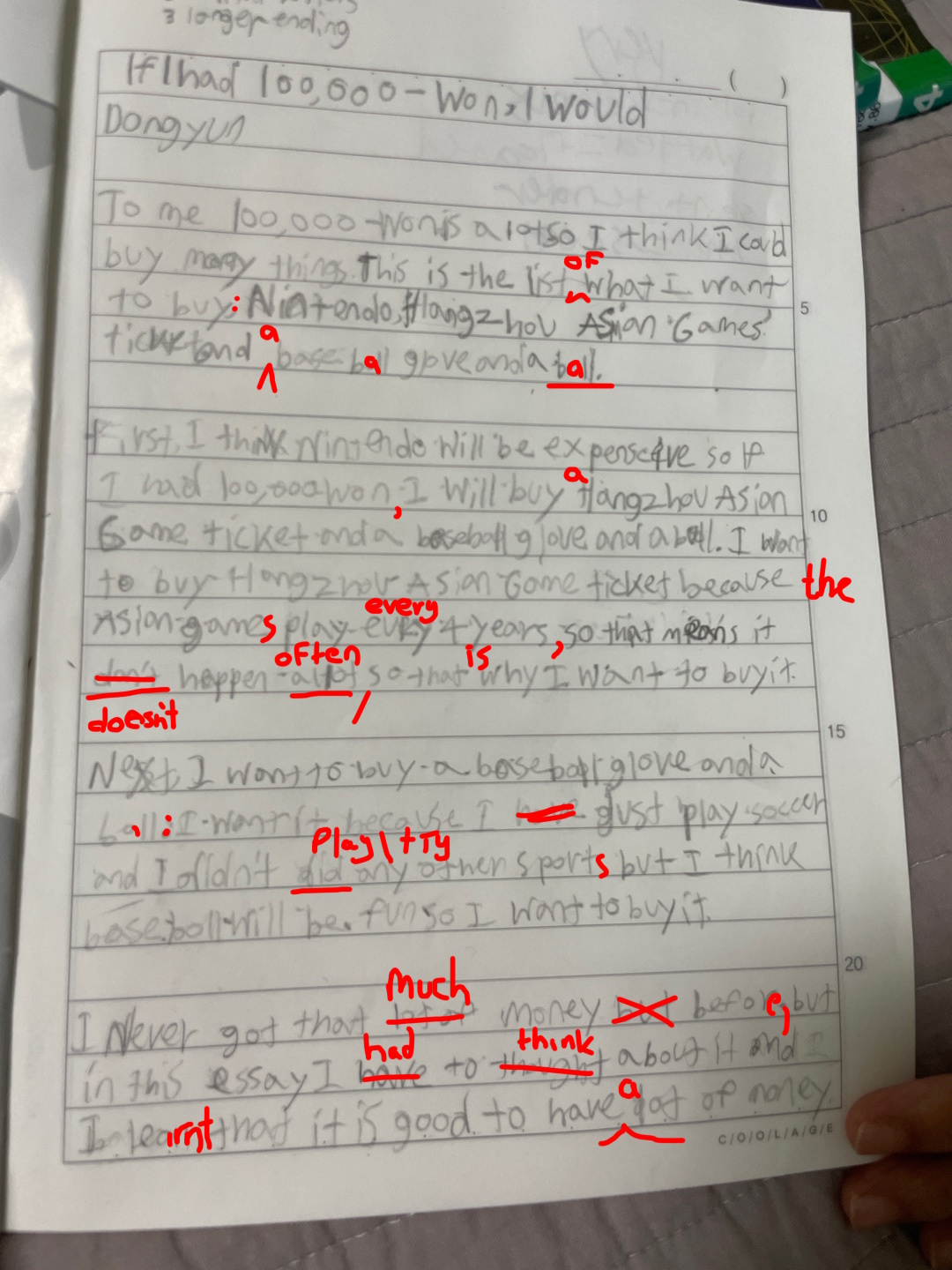 [Write this on normal lined paper, not Korean three-line paper]