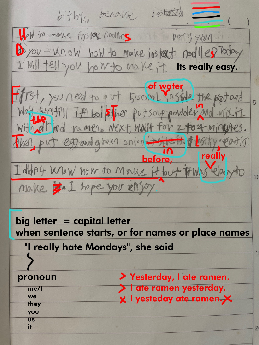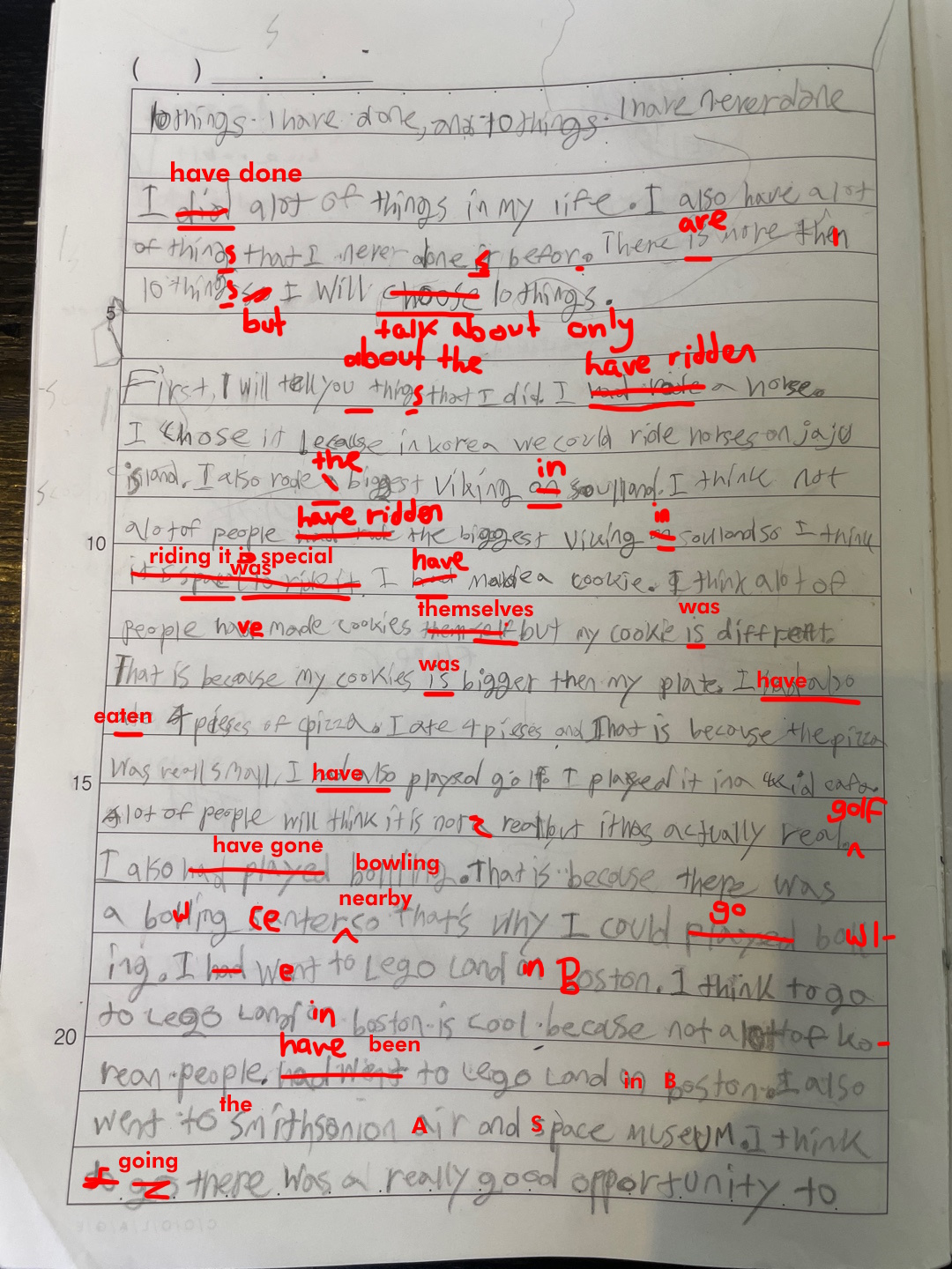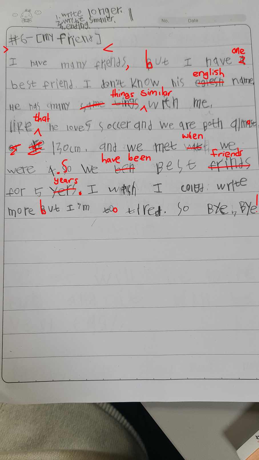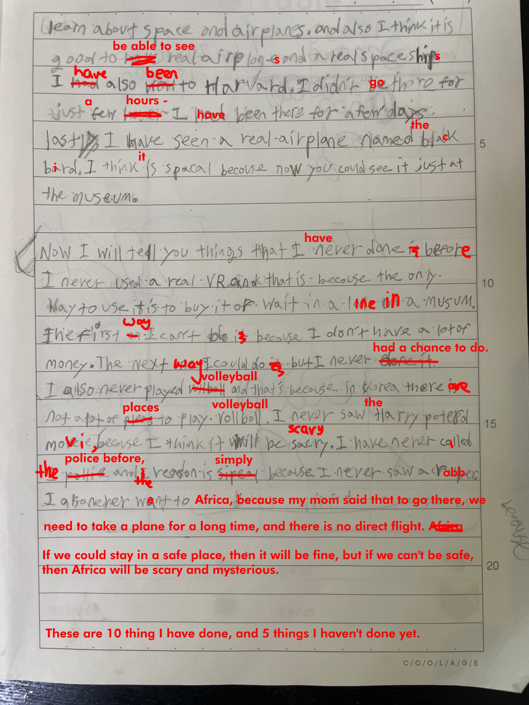 [Write this on normal lined paper, not Korean three-line paper]