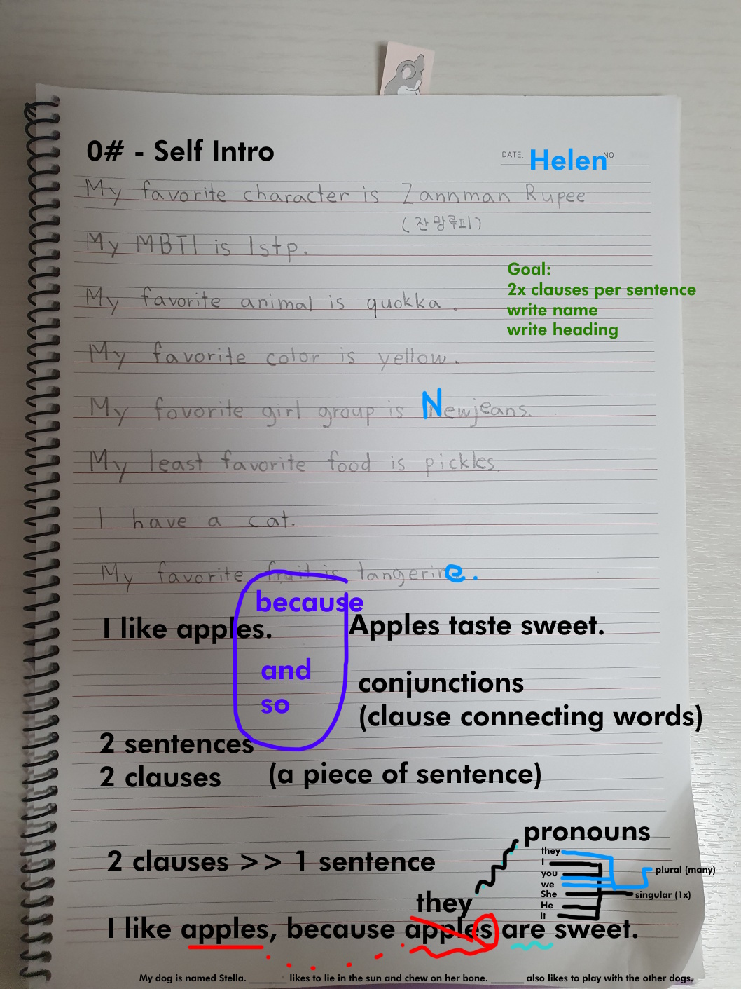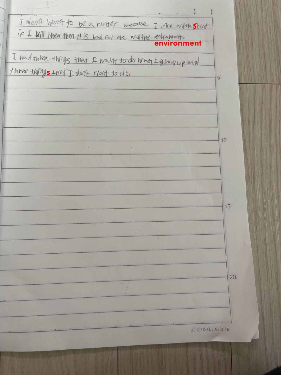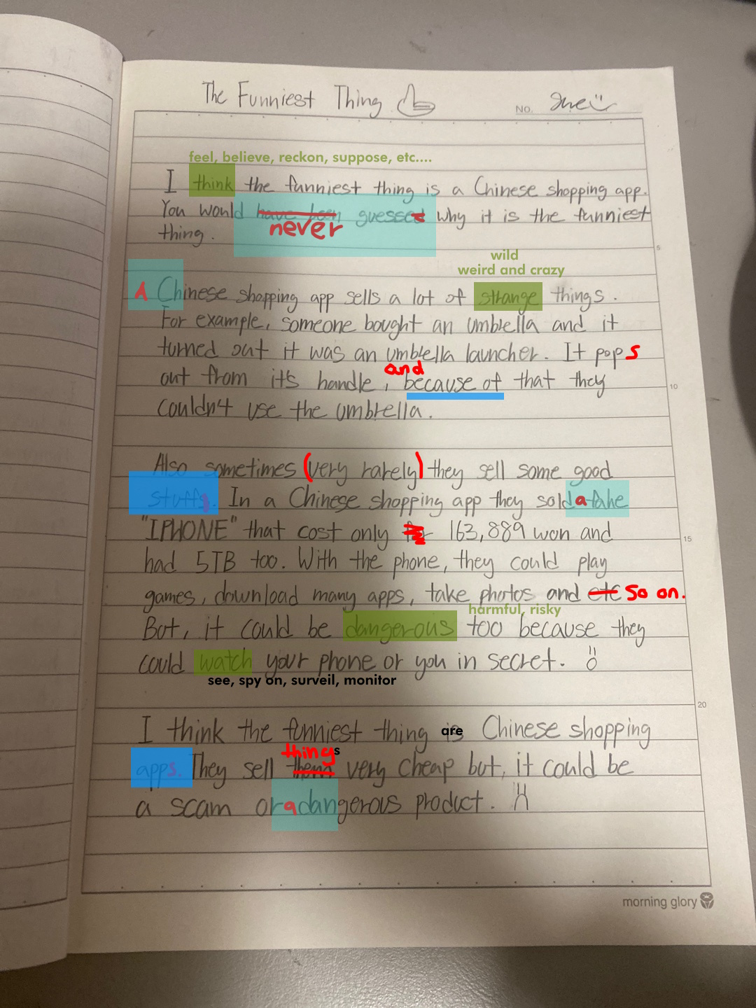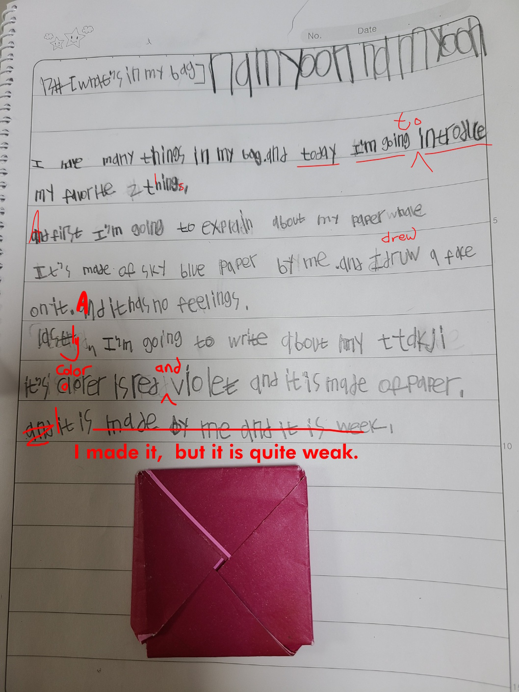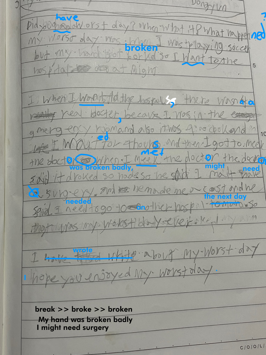 [Write this on normal lined paper, not Korean three-line paper]