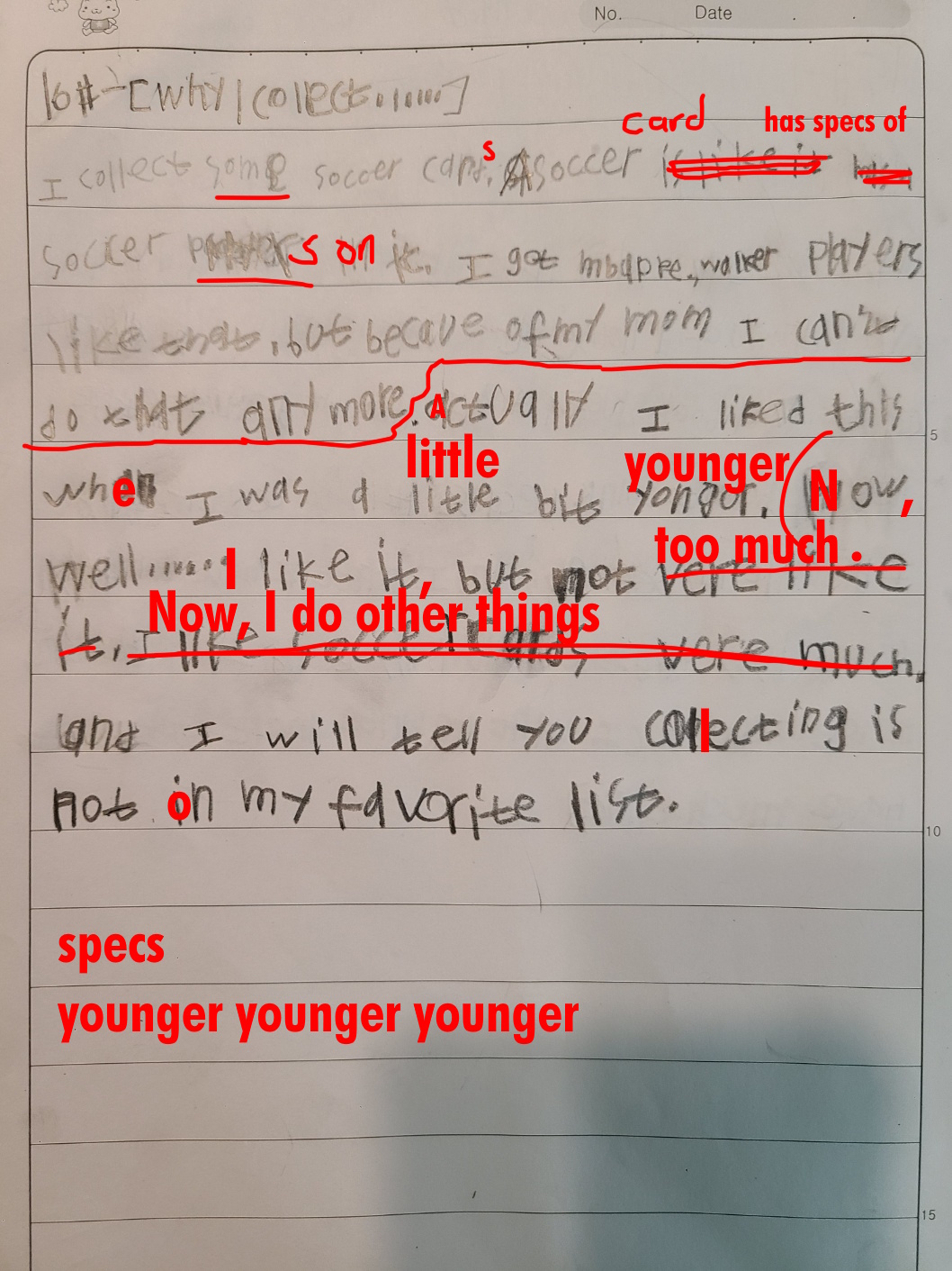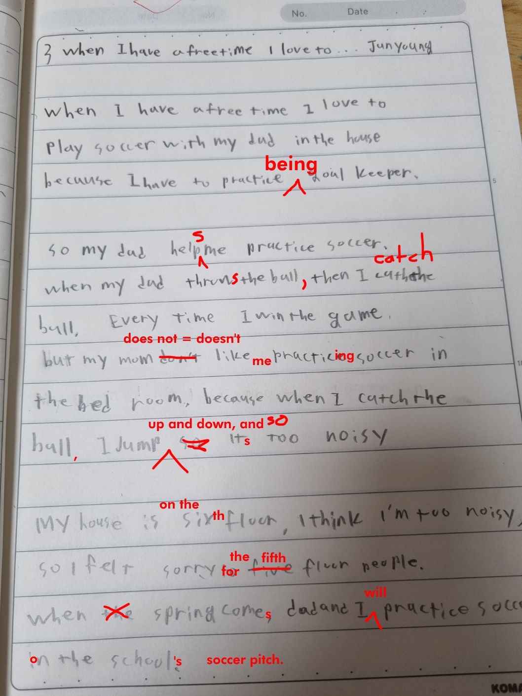 (new rule and message to Namyoon: NO WRITING ABOUT SOCCER FOR THIS EXERCISE!)