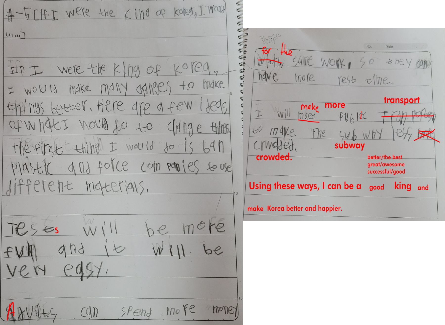 Imagine you are the ruler of Korea for a day. Think about three big problems that worry people today. Then, decide what changes you would make to solve those problems. Explain how each change would help improve your own life and the lives of other people. Write one paragraph about each change, and that will be enough for a full essay.