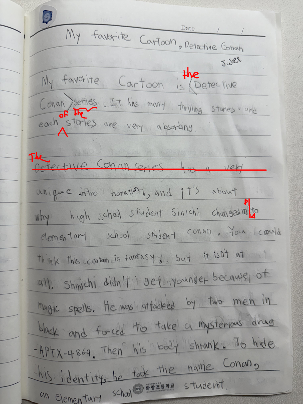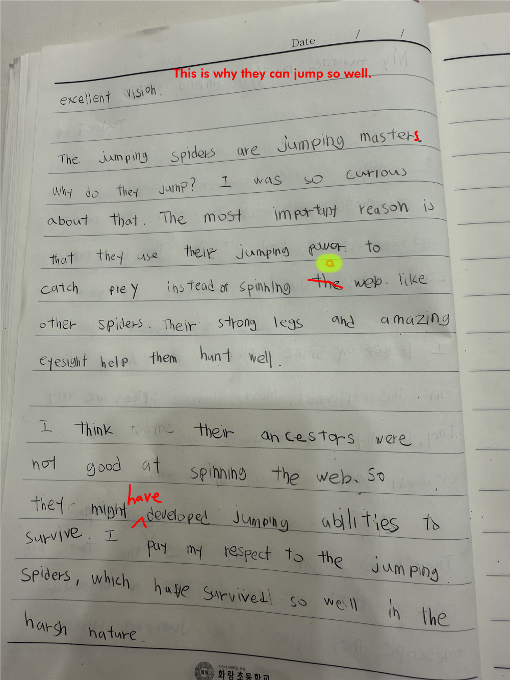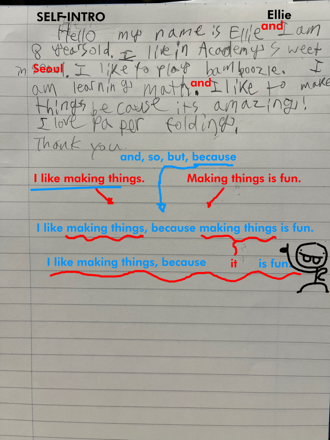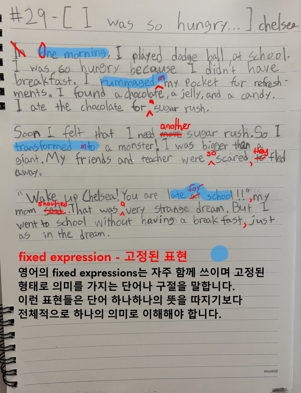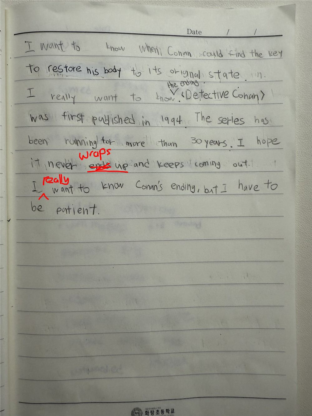 [Write this on normal lined paper, not Korean three-line paper]